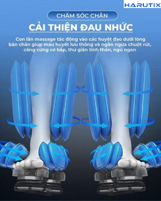 - Con lăn lòng bàn chân massage chuyên sâu, tác động vào các huyệt đạo lưu thông khí huyết