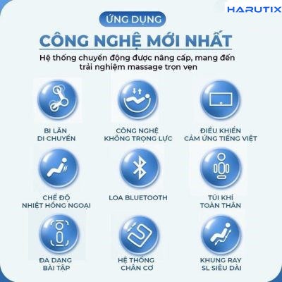 Tích hợp nhiều bài massage chuyên sâu Ghế massage HARUTIX FJ-2900 được lập trình nhiều bài massage tự động như: Nhẹ Nhàng, Thư Giãn, Kéo Giãn, Cổ Vai Gáy, Lưng & Eo, Toàn Thân… và nhiều bài massage chuyên sâu khác, kết hợp với hệ thống con lăn massage hiện đại giúp tác động sâu rộng vào các huyệt đạo, điểm đau từ đó đem đến sự sảng khoái cho người dùng.Công nghệ massage 5D, bi lăn có khả năng di chuyển linh hoạt, đi sâu vào từng điểm trên cơ thể không bỏ sót điểm nào, người dùng có thể tùy chỉnh cường độ massage phù hợp với cơ thể mỗi người. Tính năng điều khiển bằng giọng nói phù hợp với mọi đối tượng và là sản phẩm cao cấp tôn vinh ngôi nhà bạn.
